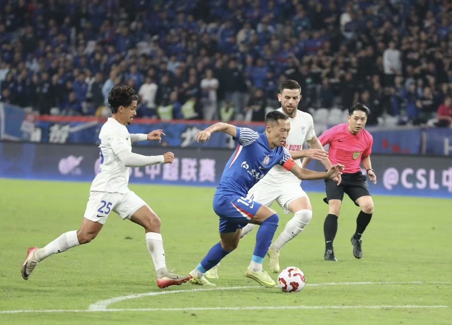 还是老将率先站了出来。半场结束前,36岁的吴曦禁区内突破数人后铲射破门,为申花扳回一球。